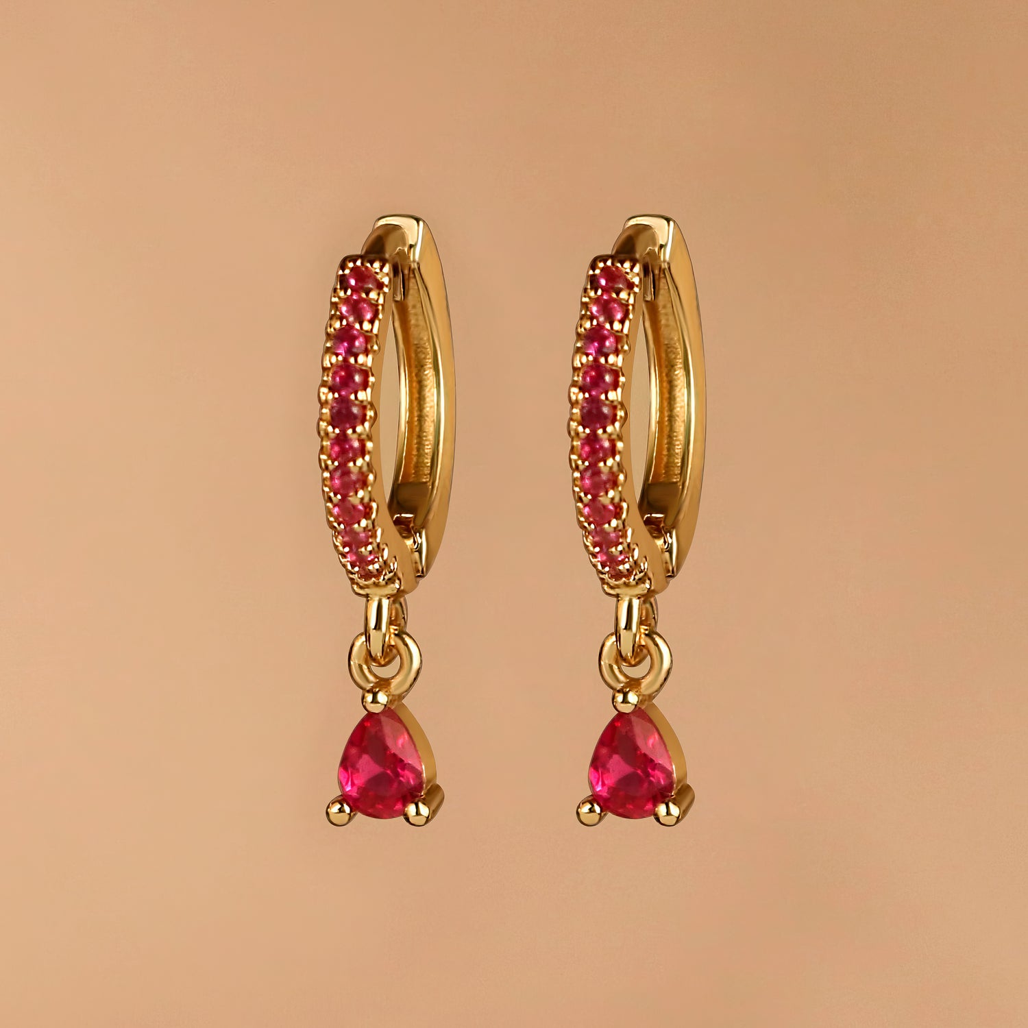 Droplets of beautiful color complement the same color encrusted on the top of these huggie hoop earrings, all thoughtfully crafted in durable 18k yellow gold plating in a rich, brightly polished shine. Exude effortless elegance with these small gold hoop earrings, perfect for those who love vibrancy with an understated statement in style.