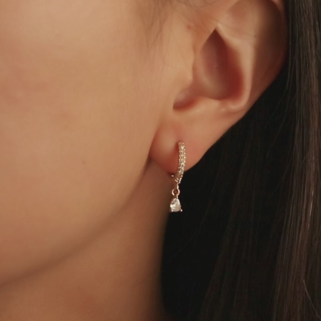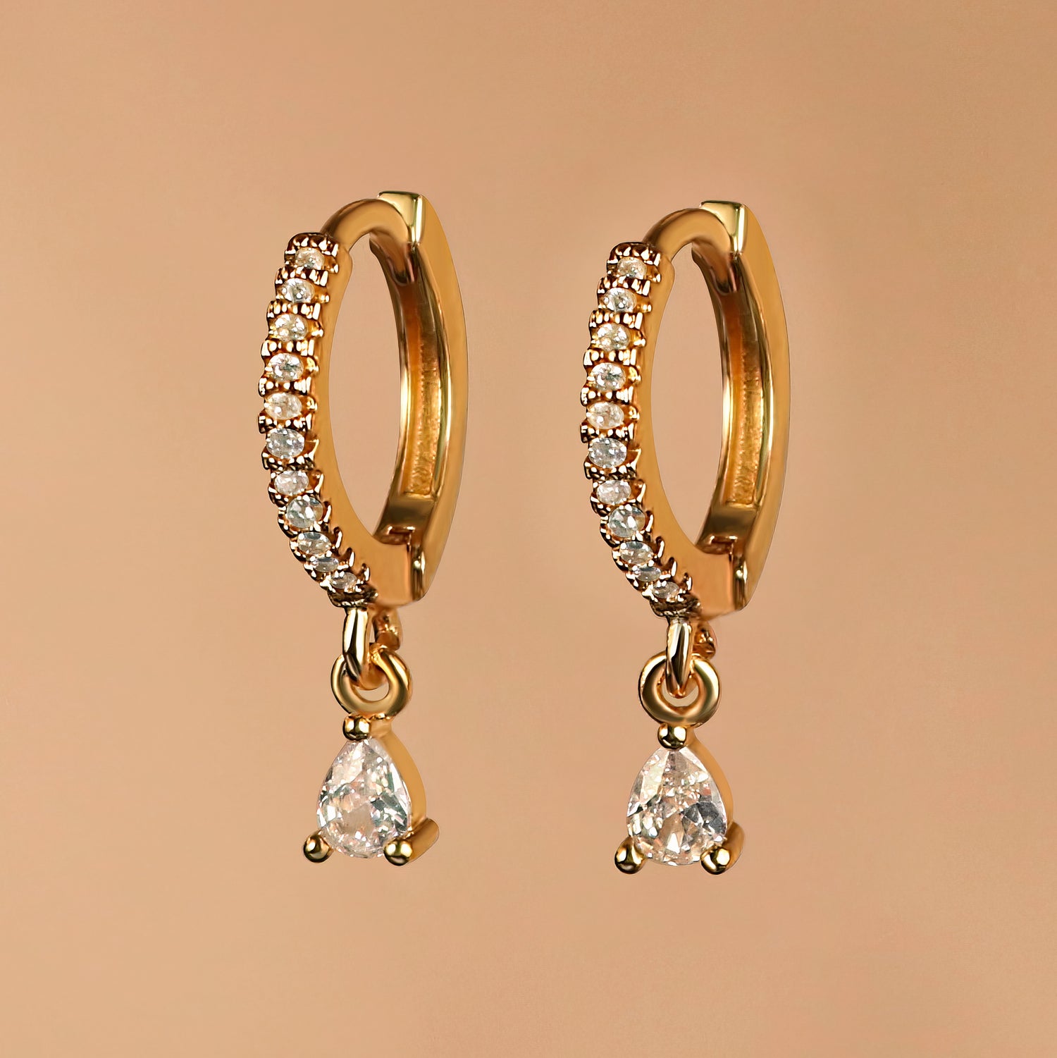 18k Gold French Cut Water Drop Huggie Hoop Earrings