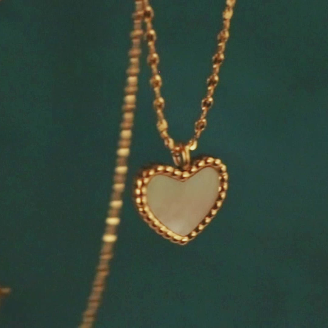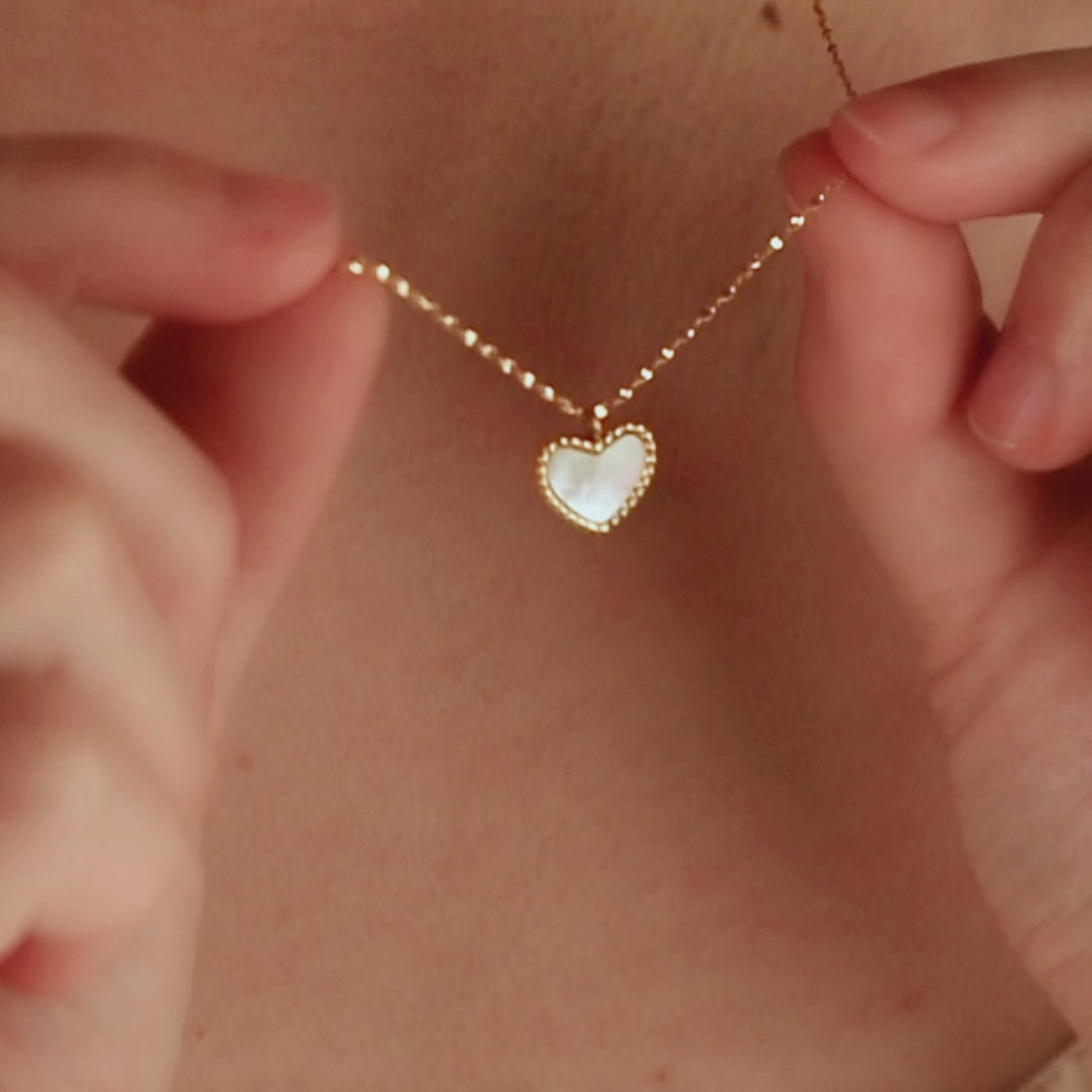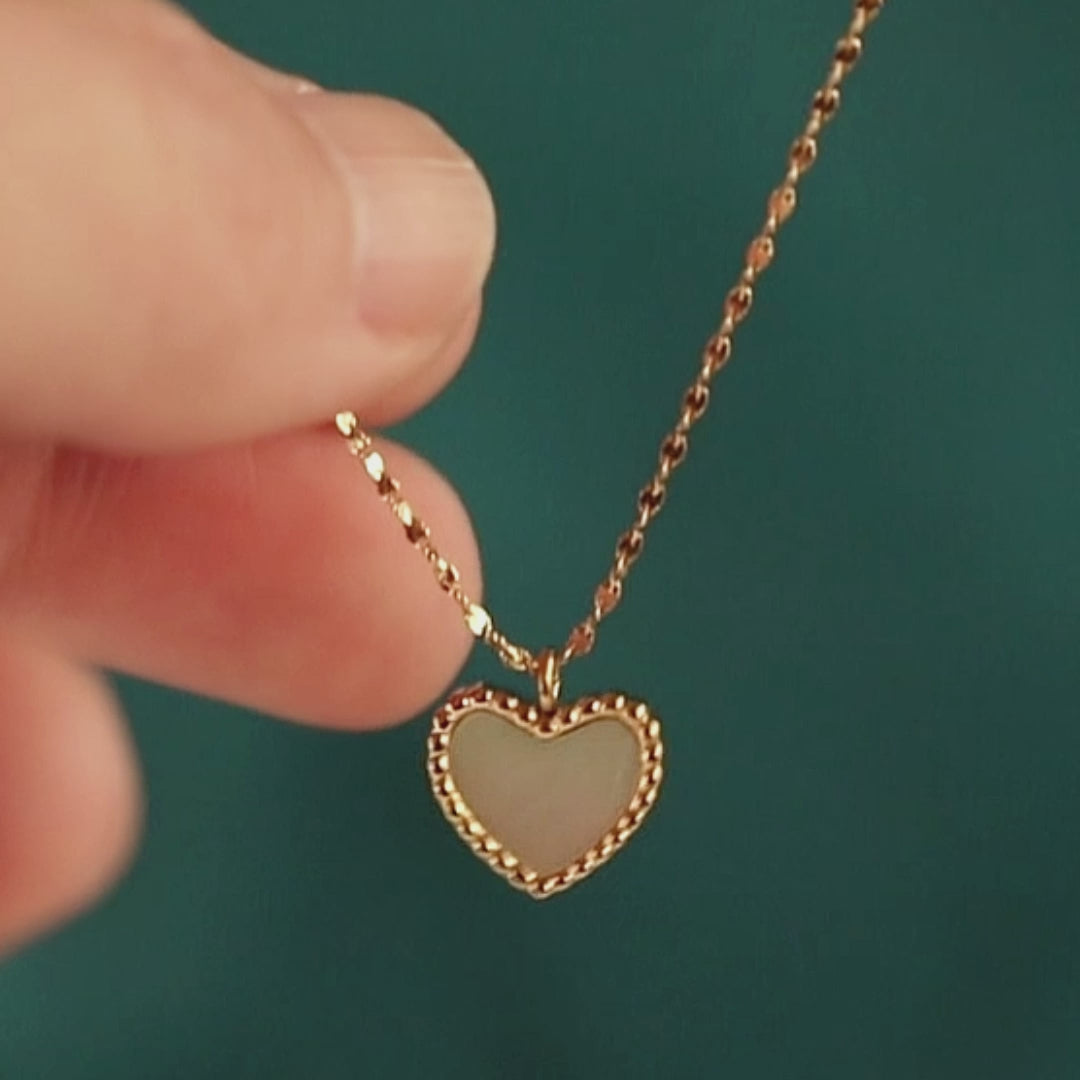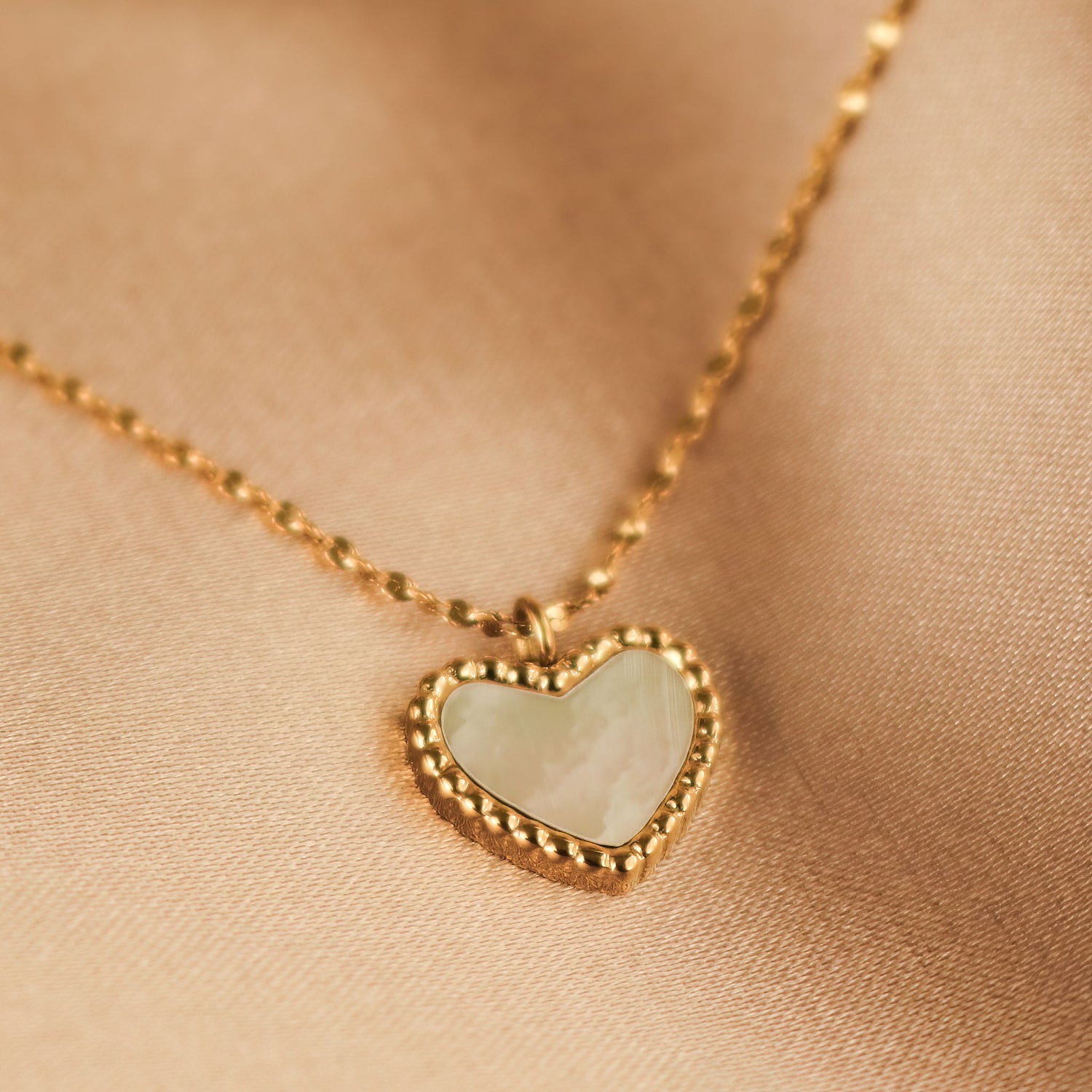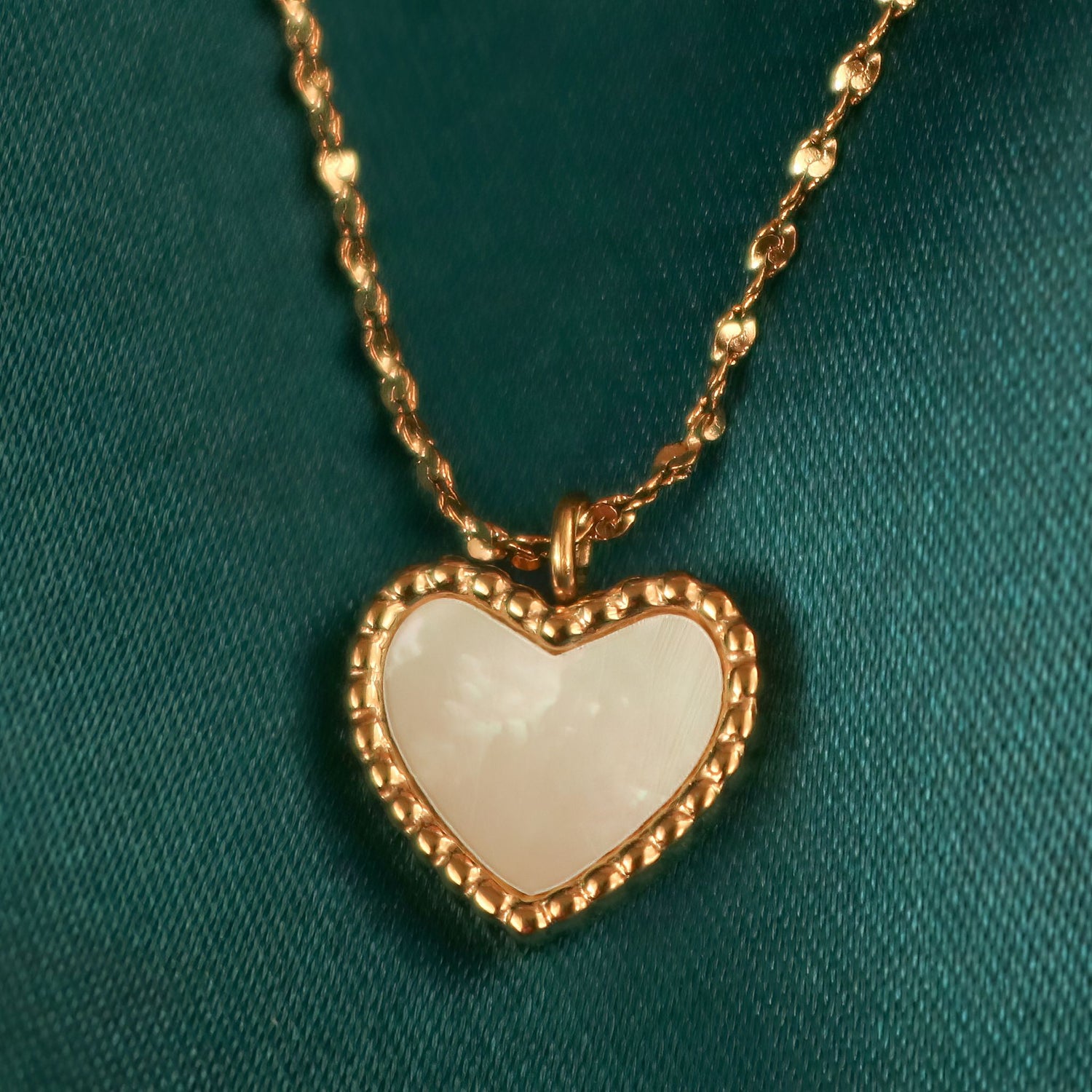 Milgrain Vintage Mother of Pearl Heart Necklace