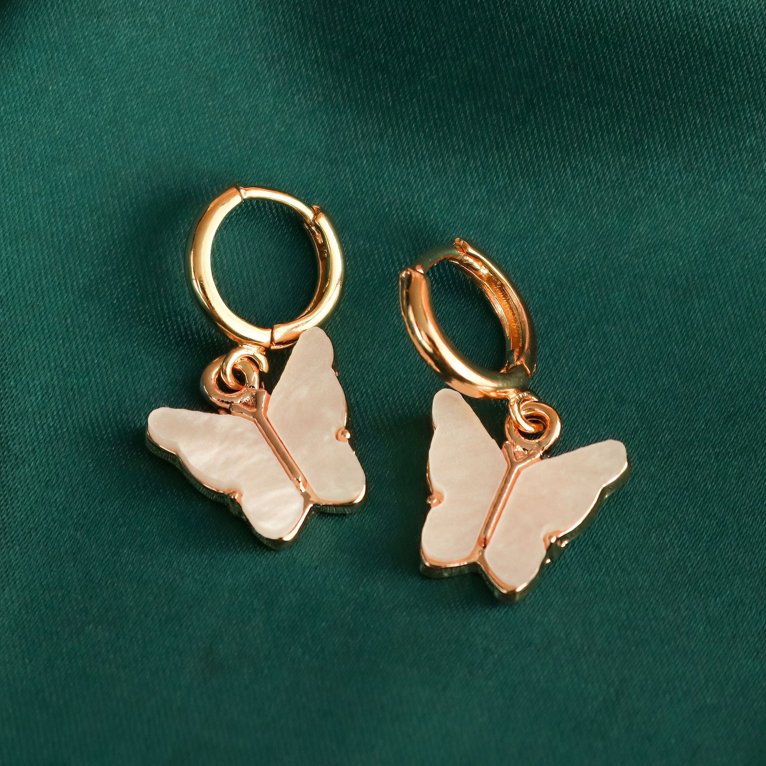 Mother of Pearl Butterfly Huggie Hoop Earrings