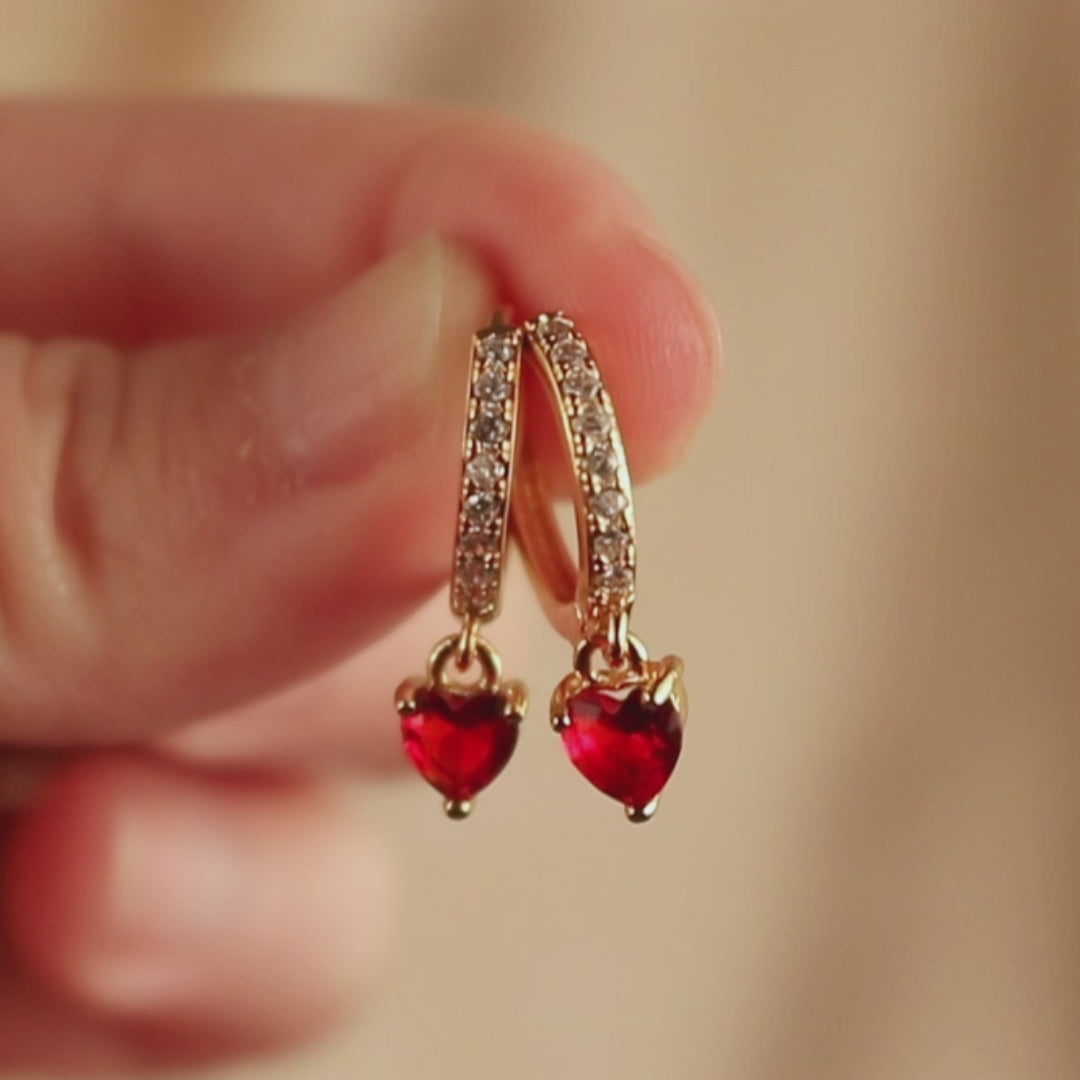 Red Ruby Droplet Diamond Huggie Hoop Earrings
